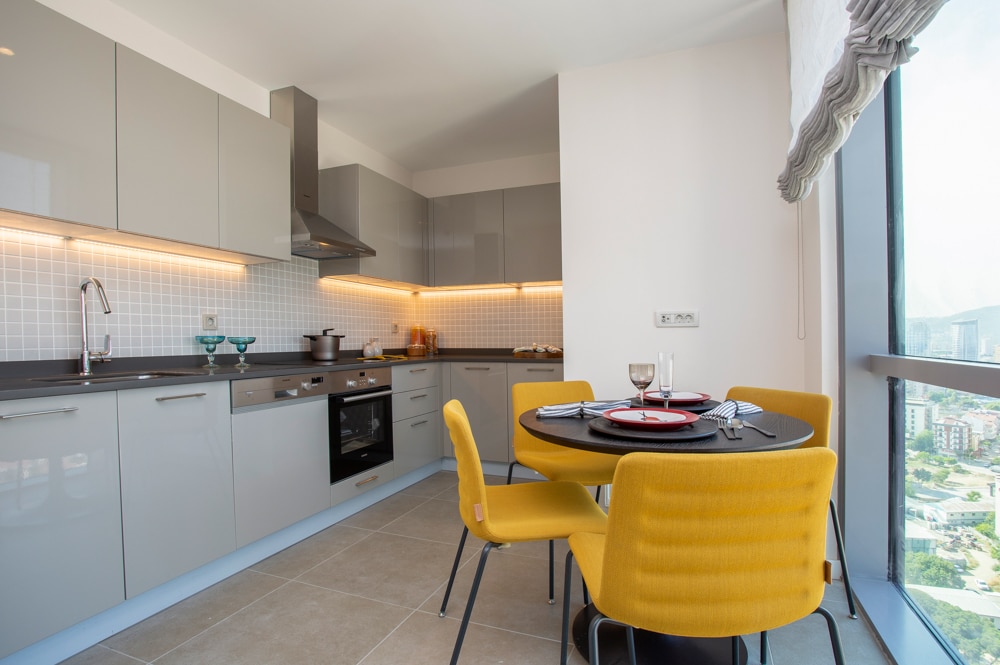 Manzara Adalar has been designed for a life full of inspiration from 1+1 to a range of apartments including 5+1 types, with a 1.5 km walking distance to the coastline and a ‘green’ location. With five blocks, three for residential units and two for office units and commercial space. In the project, where different types of flats are offered from 1+1 to 5+1, there is a private parking garage reserved for each flat and a storage area of 3 m2. Siemens brand built-in products were used in the kitchens of the apartments with a ceiling height of 3 m2 and Line a décor brand products were used for kitchen furniture.